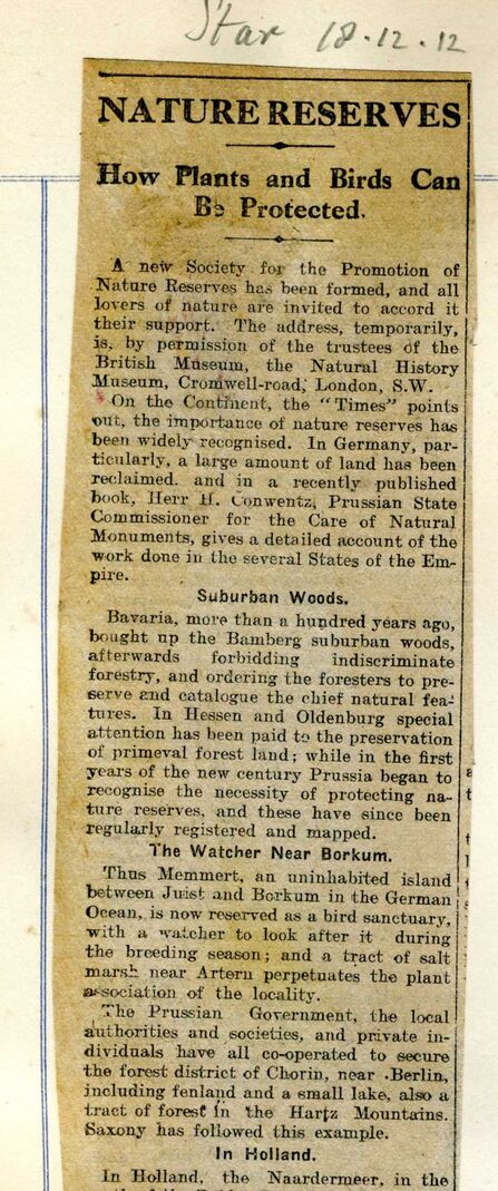 In May 1912, a month after the Titanic sank, banker and expert naturalist Charles Rothschild held a meeting at the Natural History Museum in London to discuss his idea for a new organisation to save the best places for wildlife in the British Isles. This meeting led to the formation of the Society for the Promotion of Nature Reserves. Rothschild's vision was to identify and secure protection for our islands' most important wildlife sites. His vision was a radical one that led to nature conservation as we know it.